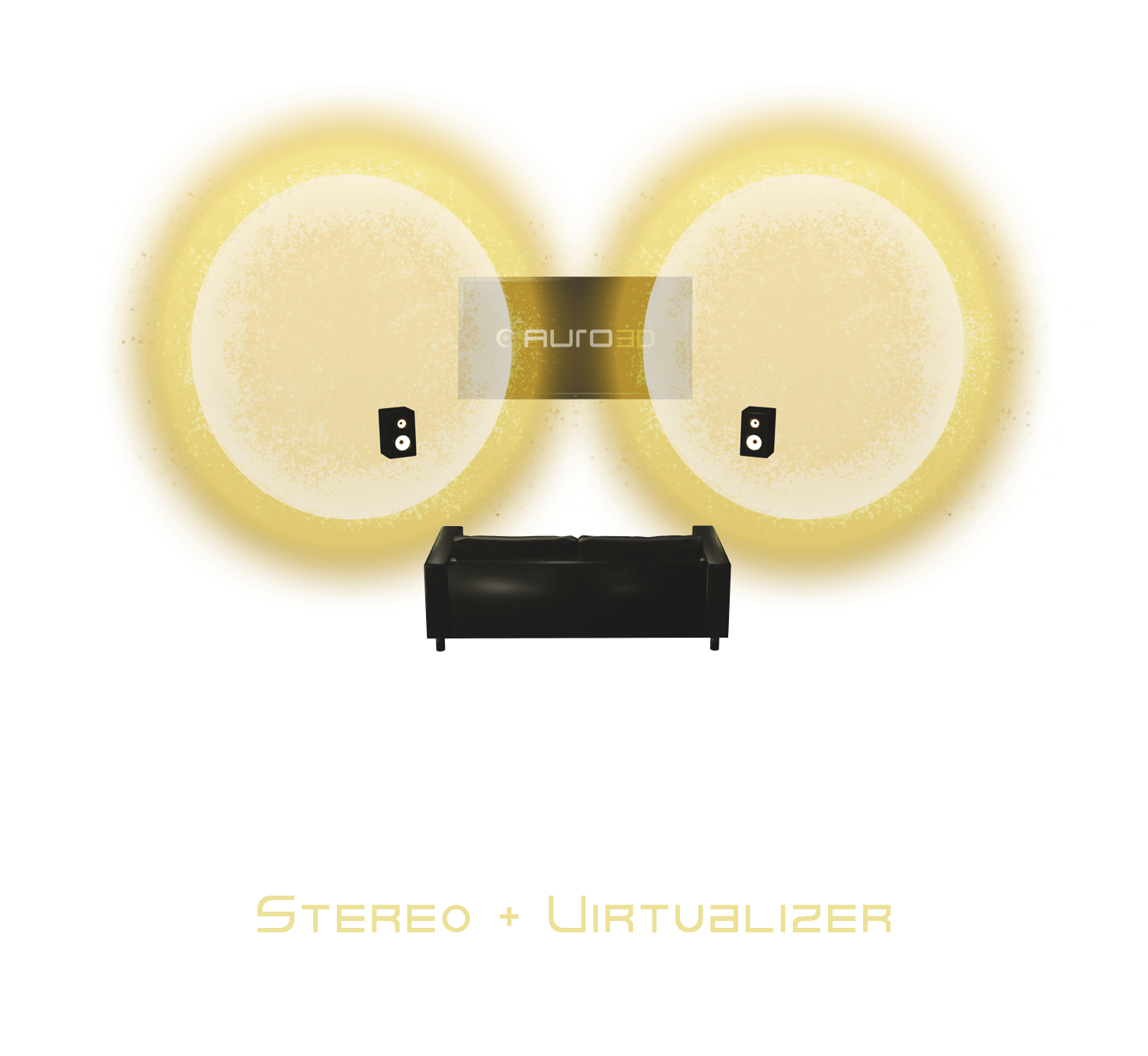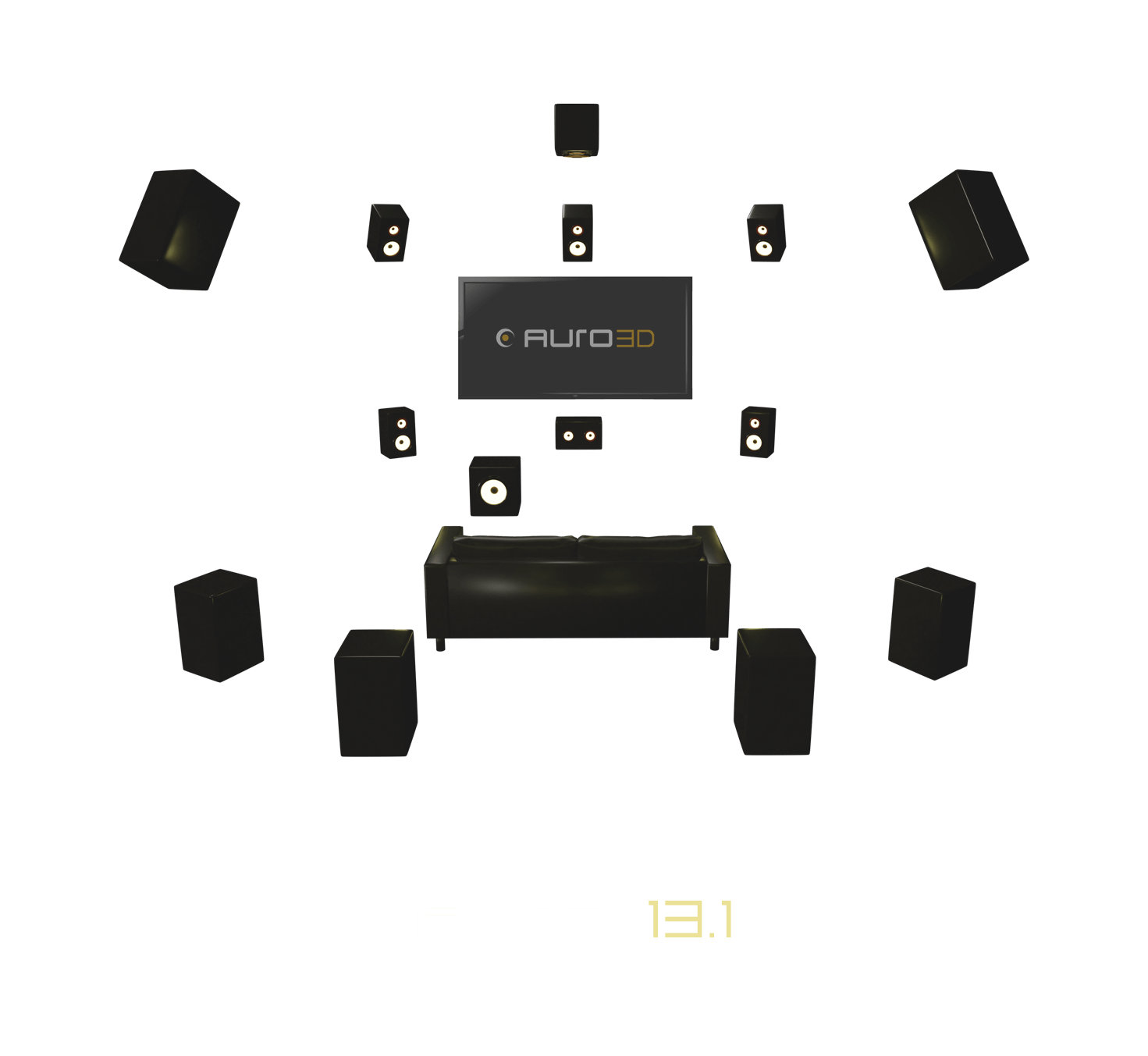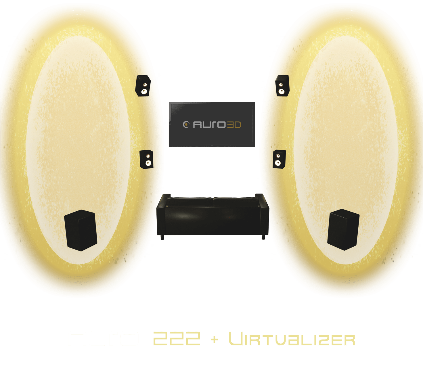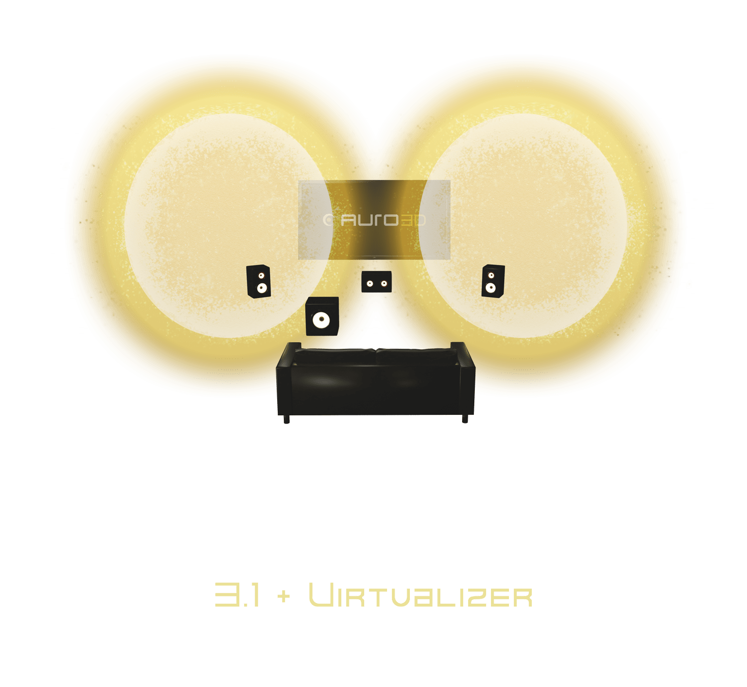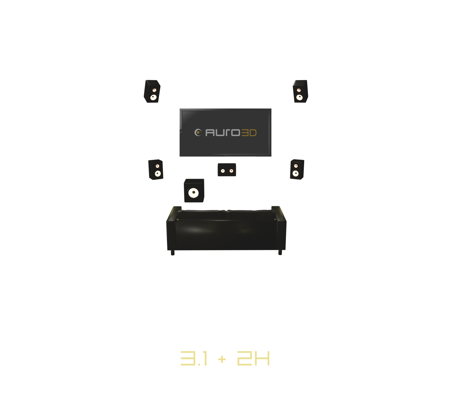 Standard 7.1 surround configuration with two Front Height speakers. Extended setup to experience large, transparent sound image in front of listener, typically centered around a screen in a smaller room, combined with the extended surround experience. Immersive sound (height) can be experienced using virtual speaker technology.
