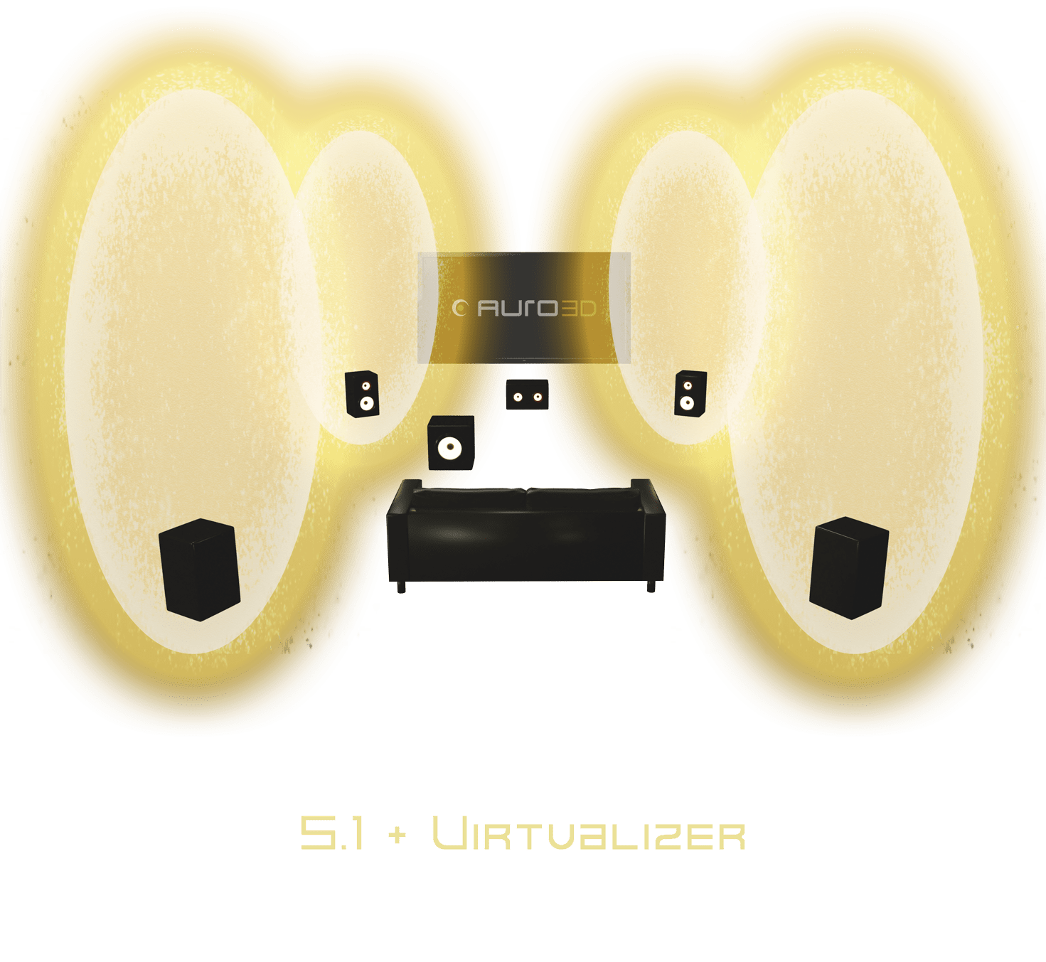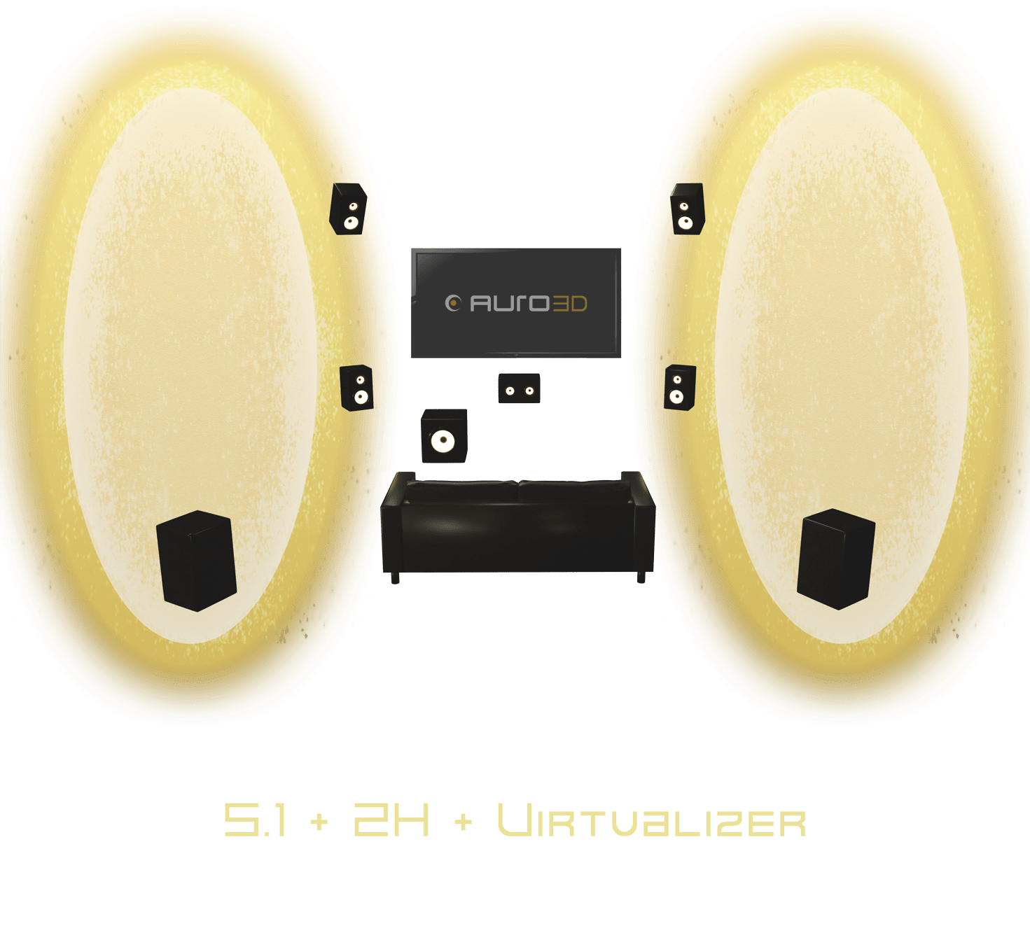 Standard 5.1 surround configuration with two Front Height speakers. Minimal setup to experience large, transparent sound image in front of listener, typically centered around a screen in a smaller room, combined with the standard surround experience. Immersive sound (height) can be experienced using virtual speaker technology.